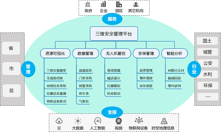 三維綜合管理平臺(tái)是公司自主研發(fā)的綜合安全管理平臺(tái)。通過實(shí)景三維模型+地理信息系統(tǒng)+物聯(lián)網(wǎng)音視頻設(shè)備+無人機(jī)直播管控+AI影像智能比對(duì)等技術(shù)的互相融合,實(shí)現(xiàn)園區(qū),社區(qū)的空地一體綜合管控。