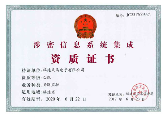 經(jīng)過系統(tǒng)的培訓(xùn)與學(xué)習(xí),公司建立一整套涉密信息系統(tǒng)集成所要求的管理體系與制度。在2017年6月,福建省國家保密局的審核中獲得了認(rèn)可與好評(píng),被授予涉密信息系統(tǒng)集成資質(zhì)。